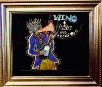 This is a flyer, t-shirt, or poster design that I cooked up some time ago depicting a humanoid creature hangin n twangin and blowing a flaming caption bubble announcing the show.
